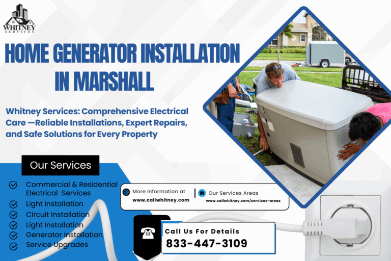 Don’t wait for the next storm or unexpected outage. Trust Whitney Services for professional home generator installation in Marshall and enjoy reliable, worry-free power in your home.